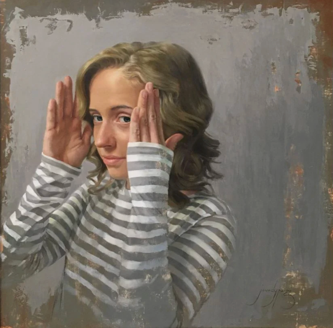 24" x 24" oil on panel in a custom wood frame and white gold leaf liner